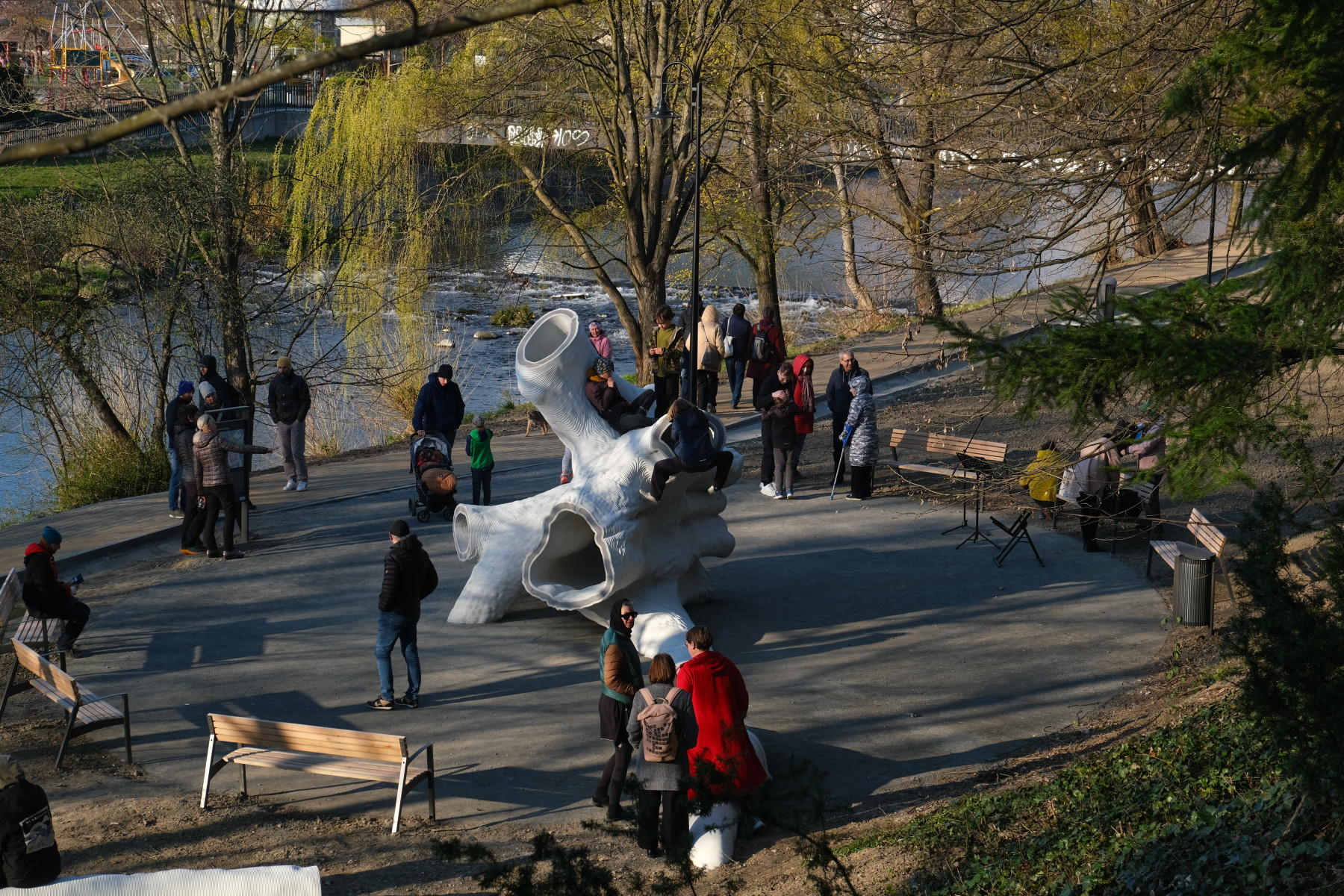 Nové Zámecké terasy navazující na stávající chodník pod zámkem Žerotínů. Slavnostní otevření se sochařem Oldřichem Morysem.